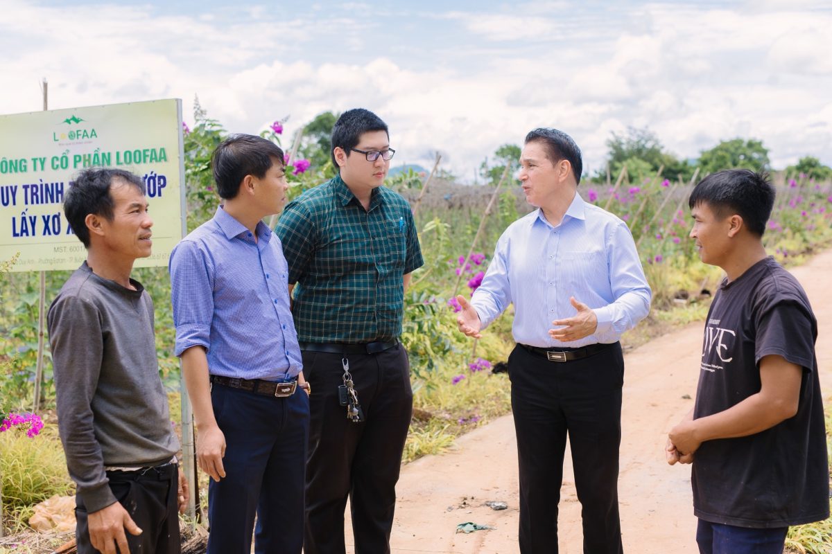 Ông Niick Ruzzo(đứng thứ hai từ phải sang) cùng ông Nguyễn Phú Tùng (thứ hai từ trái sang) tới thăm vùng nguyên liệu của Loofaa